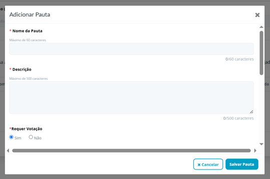 Após finalizar o preenchimento das informações da pauta, clique em Salvar Pauta para guardar os dados inseridos.